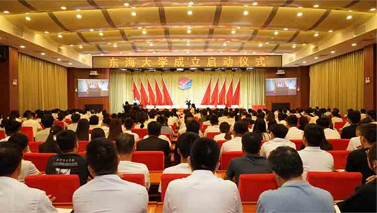 仪式开始后,首先魏建民总裁宣读了开云线上平台-开云(中国)《关于成立东海大学的决定》。随后,魏建国董事长带领控股集团领导走上台,共同为东海大学正式创建揭牌。