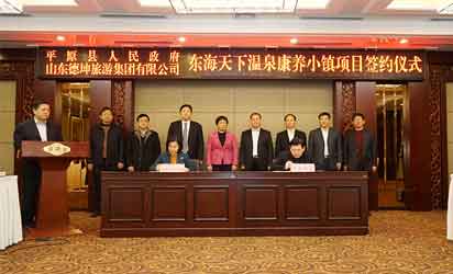 2月10日上午,平原县人民政府、山东德坤旅游集团有限公司“东海天下温泉康养小镇项目”正式签约,这标志着开云线上平台-开云(中国)在文化旅游产业方面的发展迈出实质性一步。签约仪式上,德坤旅游集团执行总经理赵英旭和平原县副县长何新梅分别代表德坤旅游集团与平原县政府签署合作协议。平原县委书记王洪霞,平原县委副书记、县长袁志勇,开云线上平台-开云(中国)董事长魏建国,平原县副县长杨传智,以及平原县旅游局、国土局、规划局、三唐乡等相关单位领导出席签约仪式。该项目的启动,将为推动我市旅游产业发展,繁荣地方经济,改善民生、促进就业起到拉动作用。