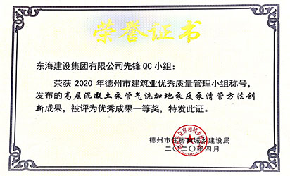 4月8日,德州市住建局下发《关于公布2020年全市建筑业群众性质量管理活动评选结果的通知》,公布了2020年全市建筑业优秀质量管理小组和优秀成果名单,以及拟推荐参加2020年度山东省建筑业QC小组成果竞赛交流会的小组和成果名单。经资料初审、专家网络评定和现场竞赛等程序,对84项成果进行了评选。最终评出一等成果22项、二等成果32项、三等成果25项,市建筑业优秀质量管理小组79个,拟推荐参加2020年度山东省建筑业QC小组成果竞赛交流会的小组和成果10项。