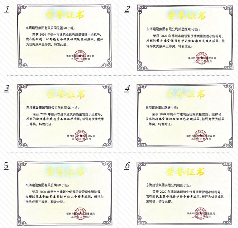 东海建设集团QC小组申报的研制一种外墙复合保温板调运托板等6项成果获得优秀成果三等奖。