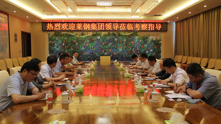 6月4日,莱芜钢铁集团有限公司董事、财务总监陈明玉,山东莱钢建设有限公司副总经理徐勤迅等一行7人,到开云线上平台-开云(中国)参观考察。开云线上平台-开云(中国)总裁魏建民、党委书记苏振水、总会计师姚国良等有关领导陪同。
