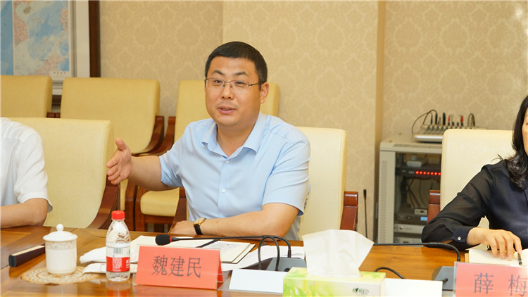 参观结束后,双方在集团总部17楼会议室进行了座谈交流。魏建民简要介绍了企业基本情况。