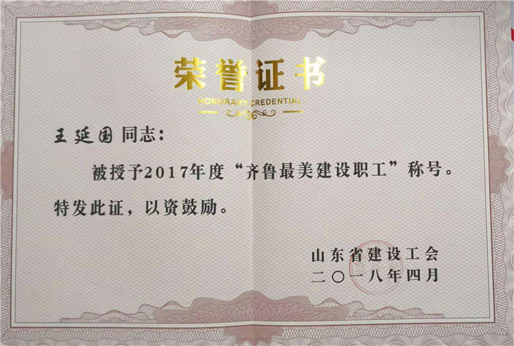 翻开他的档案,德州经济技术开发区“优秀共产党员”、德州市“建筑安全管理先进个人”、山东省“建筑企业先进个人并及三等功”、山东省“齐鲁最美建设职工”、中国建筑业优秀高级职业经理人......一个个荣誉,见证着王延国的坚守和努力。
