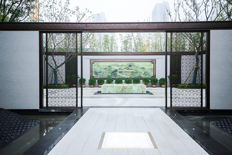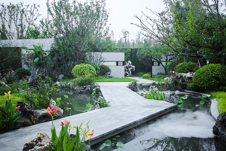 浓缩叠石、理水、照壁、林木等中式古典园林景观精萃,勾勒出一副自然唯美的山水画卷,国风上院园林示范区让所有到场来宾深切感受到中式园林的诗意韵美。