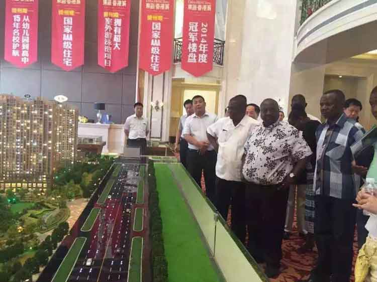在国家AAA级住宅、广厦奖候选项目—东海香港城,津巴布韦客人现场观看了沙盘区、景观体验区、样板间,并纷纷驻足拍摄小区美景和样板间。在得知东海香港城勇夺本地销售冠军楼盘时,认为该项目实至名归。
