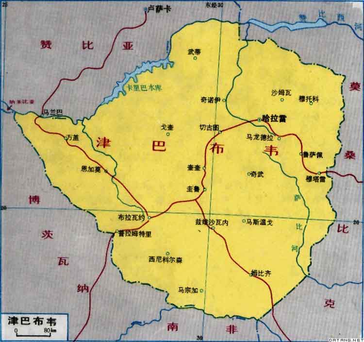 (知识普及:津巴布韦是非洲东南部一个比较古老的内陆国家,东邻莫桑比克,南接南非,西北与赞比亚相连。1890年,沦为英国殖民地。经过长达近百年的斗争,于1980年4月18日取得独立,成立津巴布韦共和国,同日,津巴布韦同中国建交。中津两国领导人频繁互访,友好合作关系顺利稳定发展。两国经贸合作正呈现出快速健康发展新局面,双边贸易额迅速增加,近年来,中国已成为津巴布韦第三大贸易伙伴,仅次于南非和欧盟。穆加贝总统在中津建交当年就来华访问,以后又多次访华,成为访华次数最多的非洲国家领导人之一。津巴布韦是非洲工业较发达的国家,制造业、农业、矿业为经济三大支柱,津巴布韦为世界第三大烟草出口国,并以出产优质鳄鱼皮而闻名,有“鳄鱼之乡”的誉称。该国自然资源丰富,工农业基础较好,但水力资源比较贫乏)