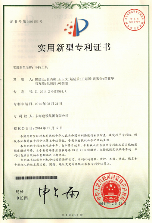本次荣获的9项专利包括“混凝土防冻剂”等发明专利2项、“组合式建筑模板”等实用新型专利7项。这些发明专利和实用新型专利技术,对建筑施工科技进步、效率提升具有重要促进作用。如荣获发明专利证书的“混凝土防冻剂”,可在负20度左右使用,掺入改防冻剂的混凝土具有很好的抗冻性;100次冰融强度损失率低于5%,90天收缩率比小于117%,可应用于冬季较寒天气下的施工,在缩短工程建设周期中具有较大应用价值及可推广性。 发明专利和实用新型专利的获得,使开云线上平台-开云(中国)拥有了自主知识产权,从而提高了我集团的地位、声誉和发展后劲,为企业在建筑市场竞争中争取主动奠定了基础、创造了有利条件。