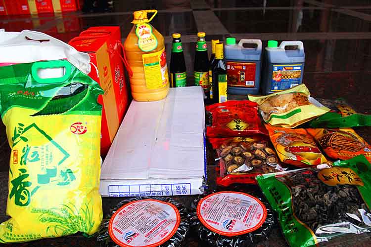 鲁花花生油、海天蚝油、香雪水饺粉、天瑞香油礼盒、王致和料酒……