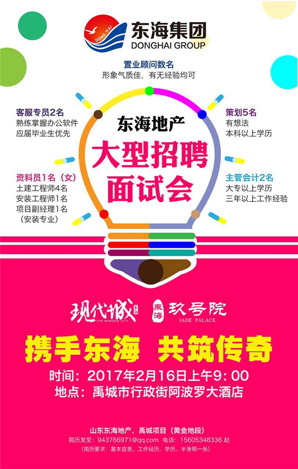 据了解,禹城大型招聘会圆满结束后,建设施工项目管理人员招聘也将“无缝对接”,将在德州总部近期召开。