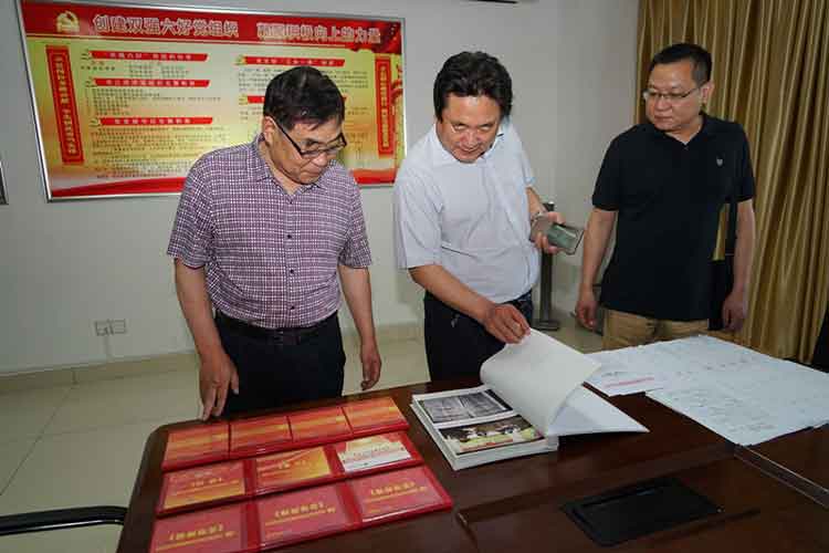 5月11日、18日,德州市委组织部副部长陈廷国,德州市委统战部副部长、市工商联党组书记赵金刚分别带队来开云线上平台-开云(中国)调研非公党建工作,集团党委书记苏振水陪同。 两个调研组首先参观了开云线上平台-开云(中国)党建活动室,室内丰富的内容、详实的资料深深吸引着各位领导。随后,调研组在活动室与开云线上平台-开云(中国)党组织负责人进行了座谈,苏振水汇报介绍了企业发展和非公党建情况。