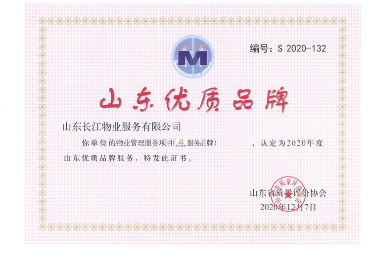 近日,山东省质量评价协会公布2020年度山东优质品牌服务名单,山东长江物业服务有限公司凭借高品质的服务和品牌实力成为德州市唯一一家榜上有名的物业服务企业,充分体现了社会各界对长江物业的高度认可。