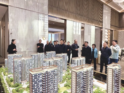 卜祥联一行先后参观了东海国际的营销中心、景观示范区、超配式业主服务中心、精装样板间等重要区域,认真听取了项目的设计理念、施工工艺、配套设施等方面的详细介绍,并对东海国际在品质管控、景观绿化、新工艺技术应用等方面的先进经验及亮点给予了高度评价。