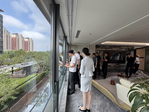 考察团一行先后参观了东海国际的景观示范区、精装样板间、艺术车库、超配式业主服务中心等核心区域,重点考察了户型空间的功能性优化、智能家居系统的集成方案等关键领域,对项目展现出的精细化、人性化、科技化、绿色化建设成果给予高度评价。