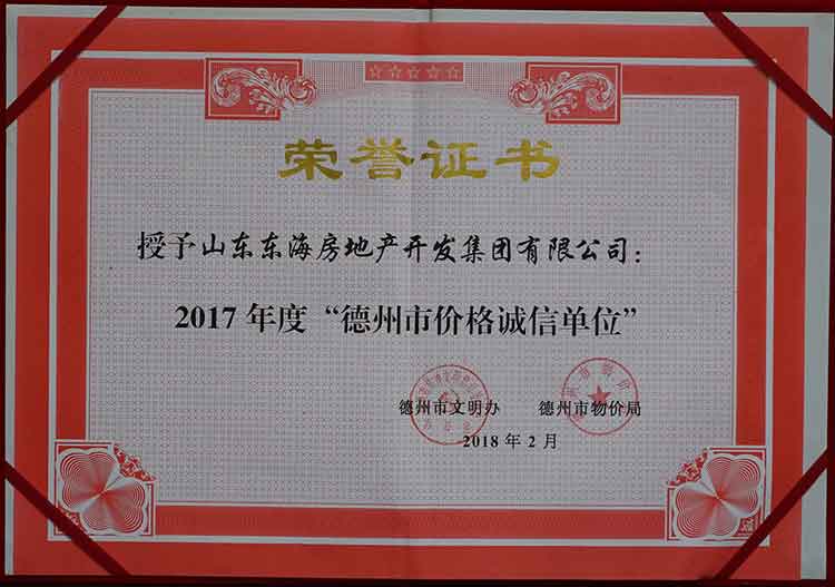 东海房地产开发集团获“德州市价格诚信单位”称号