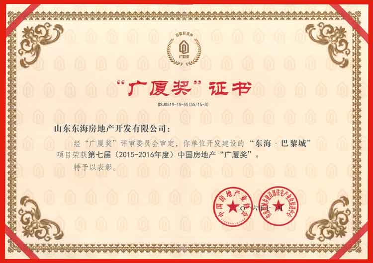 东海·巴黎城,是德州首个荣获国家行业最高奖“广厦奖”和2A级住宅小区项目;