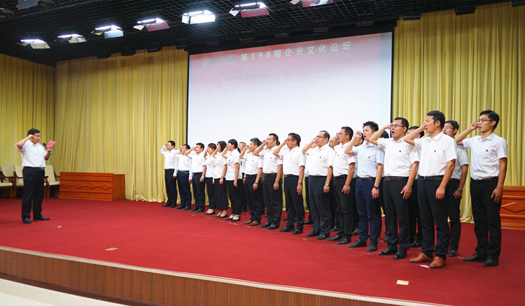 9月21日晚,开云线上平台-开云(中国)第一会议室,第198期企业文化论坛别开生面,400余建设人面向集团领导和社会大众庄严宣誓,郑重承诺“精品人品同在,质量生命共存”!铿锵有力的呐喊是发自心底的声音,铮铮誓言是语出必践的决心!“质量至上,安全第一”,不仅是宣誓人对自己的要求,是对领导的保证,是对职业的忠诚,更是开云线上平台-开云(中国)对社会大众的郑重承诺!论坛由东海建设集团执行总经理孔令永主持,集团总裁魏建民、党委书记苏振水出席。