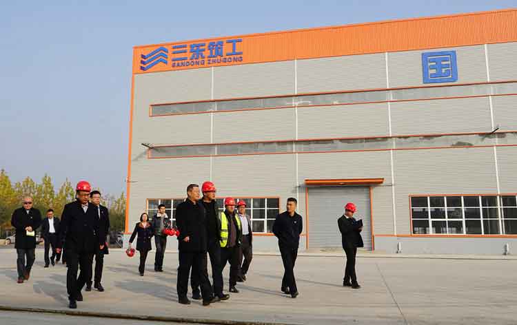 作为省、市新旧动能转换重点项目,三东筑工项目备受各级领导及媒体关注,多次迎来参观指导。闪光灯下的项目现场,往往是做足了“功课”,项目真实的施工场景是什么样的?是否一切按标准、按计划执行?落实是否到位?有没有漏洞和瑕疵?此次魏建国董事长率队突查,目的就在于此。当天,督查组一行分别对参观流程、新车间、办公楼进度和质量等情况进行了现场实地察看,魏建国董事长边查边看边问边强调。在参观接待流程上,他指出,要严格按照集团既定标准,尽快形成一套“标准化”的参观流程,确保时间节点精准、讲解内容丰富、参观流程规范。当看到产品上贴的二维码时,魏建国专门扫码查看了所显示的产品技术交底、质检过程明细表、安全隐蔽验收、质检生产人员、合格证等相关信息,并强调要确保亮点细节的准确无误。