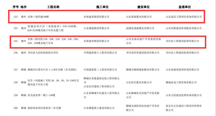 去年底,在省住房和城乡建设厅组织的“2018年度省房屋市政施工安全文明示范工地”验收评审中,由东海建设集团承建的禹城东海·现代城项目、齐河东海·清河园项目,经专家组的现场考评和省住建厅集中公示,最终,顺利通过评审。