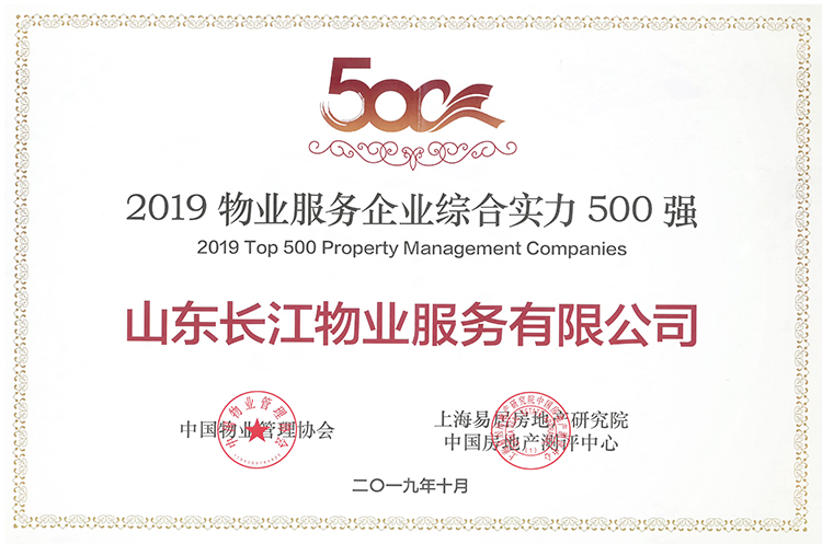 10月15日,由中国物业管理协会、上海易居房地产研究院中国房地产测评中心联合举办的“第三届国际物业管理产业博览会暨第五届中国物业管理创新发展论坛”在深圳会展中心隆重召开,会上发布了《2019物业服务企业发展指数测评报告》,公布了“2019物业服务企业综合实力500强”,这也是中国物业管理行业首次发布物业服务企业500强榜单。山东长江物业服务有限公司(以下简称“长江物业”)凭借在经营情况、管理规模、盈利能力、服务体系以及其他方面的出色表现,实力上榜全国物业500强。