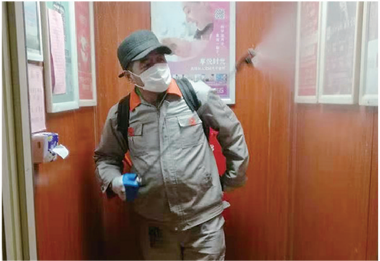 消杀在一线,严把小区消毒关。从门岗到大堂,从车库到电梯,从防护栏杆到健身器材,还有社区垃圾箱、快递收报箱、门把手、休息区域……白天黑夜都有物业人辛劳的身影,工作人员开展全方位消毒工作,覆盖业主回家路上的各个环节。