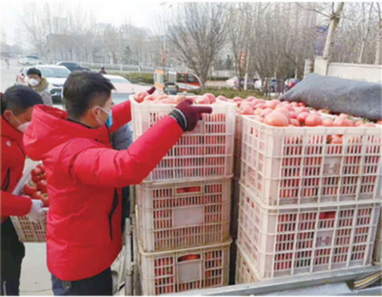 1月29日下午,第一批采购到的西红柿和黄瓜共1500公斤,运送到了长江物业各小区,物业工作人员称重、包装、核实购买品种和数量后,送到了业主们手中。