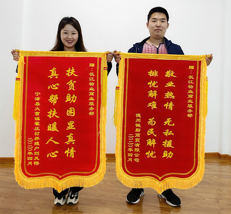 为了表达感谢,战奶奶和谷经理亲自送来印着“扶贫助困显真情、真心帮扶暖人心”“敬业热情、无私援助、排忧解难、为民解忧”的两面锦旗。
