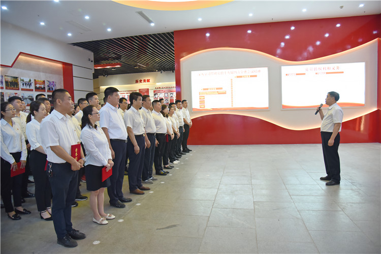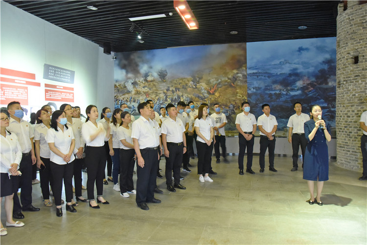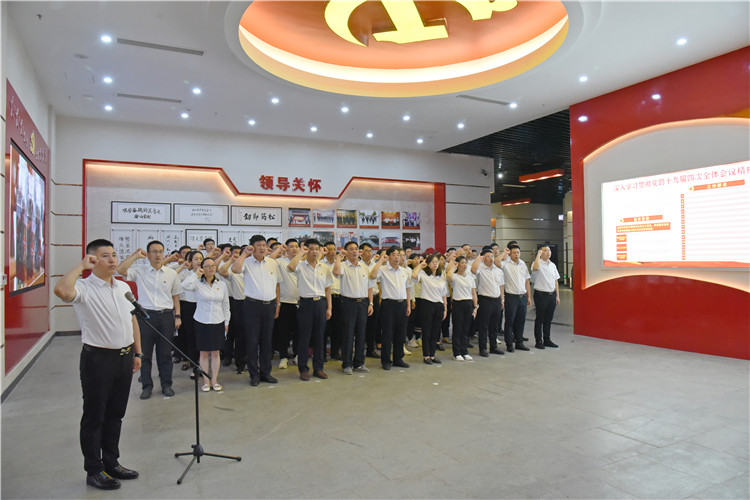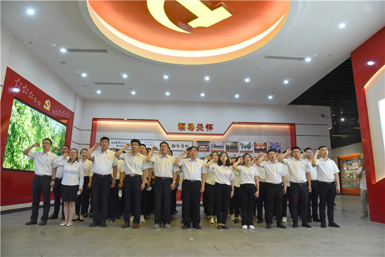 参观结束后,全体党员怀着满心的激动和满腔的激情,面向鲜红的党旗,庄严举起右手,铿锵有力的宣誓声回荡在耳边,大家重温入党誓词,表达对党的忠心。