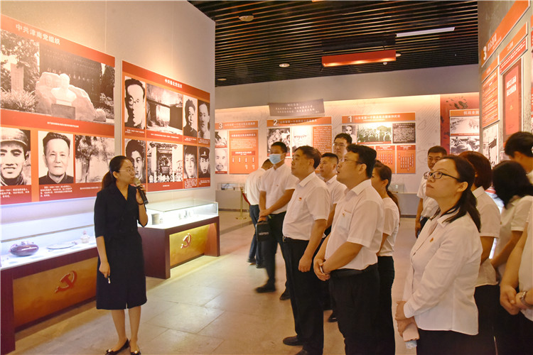 在讲解员的引导下,全体党员在集团党委书记苏振水的带领下,仔细观看了冀鲁边区革命纪念馆内陈列的珍贵文献、影像照片等原始资料,认真聆听了讲解员精彩的解说。通过实物、图片、视频、大型雕塑和声光电等表现手段,全面系统、形象生动地再现了冀鲁边区军民英勇战斗的光辉历程和感人事迹。那些催人奋进、奋发图强的史实,通过一幅幅展板、一张张照片、一件件历史遗物、一段段革命故事,让大家仿佛置身于烽烟滚滚的战争年代,感受革命先烈开创新时代的艰难和勇气,深深被冀鲁边区军民艰苦卓绝的辉煌战斗历程所震撼,进一步加深了党员们对党的初心使命的认识和对党的热爱。