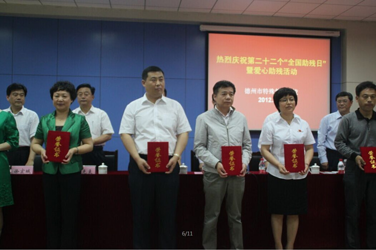 自从2011年以来,集团共向德州市特殊教育学校捐款6万元,向残疾孩子们献出友爱之心,为残疾孩子创造美好幸福的未来。支持残疾教育事业的发展。图为在第22个“全国助残日”暨爱心助残活动中集团总经理魏建民出席捐赠仪式并现场捐款。