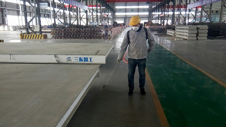 为做好复工复产后的疫情防控, 三东筑工第一时间成立了应急小组,统筹规划疫情防控和复工复产的相关预案。应急小组提前组织工作人员开展全方位的消毒防疫工作,办公场地、生产车间及厂区道路、食堂已按要求进行了严格的安全检查和消毒。