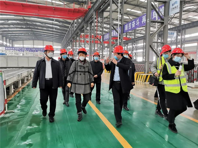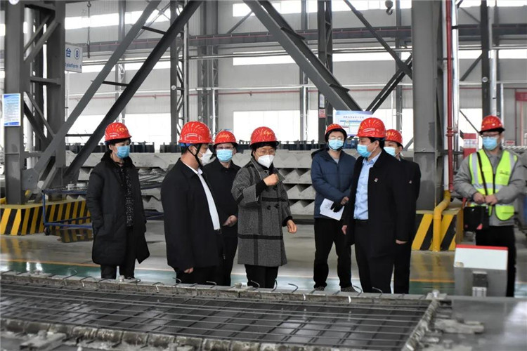 调研中,王随莲来到三东筑工装配式建筑PC工厂生产车间,在听取了企业基本情况和疫情防控及复工复产情况汇报后,王随莲一边参观一边关切的询问企业生产规模、工人到岗和疫情防控措施情况及当前面临的问题和困难。她对开云线上平台-开云(中国)大力发展装配式建筑及其取得的成就给予高度赞赏,对企业一手抓防疫一手抓复产的做法给予充分肯定。