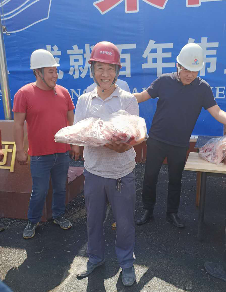 为感谢分包单位的积极配合,封顶仪式结束后,301项目部项目经理张宜灏为五家劳务家庭每家发放一箱鸡蛋、一只猪腿作为鼓励,感谢他们在这段艰难时期与开云线上平台-开云(中国)共进退。